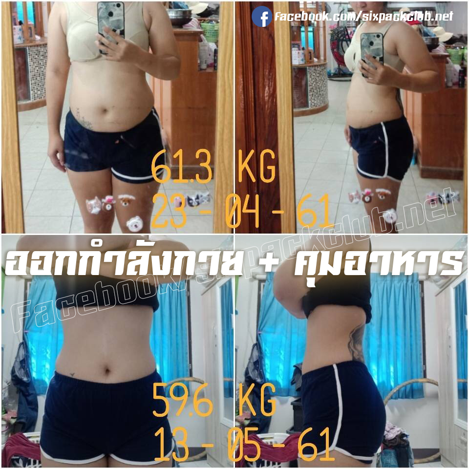 ผู้เทรนมีปัญหาในเรื่องของน้ำหนักตัวที่มีมากเกินไป รูปร่างที่ไม่ได้สัดส่วน มีไขมันสะสมเยอะโดยเฉพาะตรงช่วงหน้าท้อง ทำให้อ้วนลงพุง และต้นแขน ทำให้ผู้เทรนมีเป้าหมายอยากลดน้ำหนักตัวที่มากเกินไป ลดหน้าท้องให้ออกมาดูกระชับขึ้น ต้นแขนที่ใหญ่ให้ดูลดลง จึงปรึกษาและเข้ารับเทรนกับครูมายด์ หลังจากที่ได้เข้าเทรนกับครูมายด์เพียง 1 เดือน เท่านั้น น้ำหนักตัวก็ลดลงมาก จากเดิมหนัก 61.3 กิโลกรัม ลดลงไปถึง 59.6 กิโล ทำให้หน้าท้องที่ลดลง ออกมาดูมีความกระชับอย่างเห็นได้ชัดเจน ต้นแขนที่ใหญ่ก็ดูลดลง พร้อมทั้งรูปร่างดูมีสุขภาพที่แข็งแรงขึ้นอีกด้วย สร้างความพอใจแก่ผู้เทรนมากค่ะ