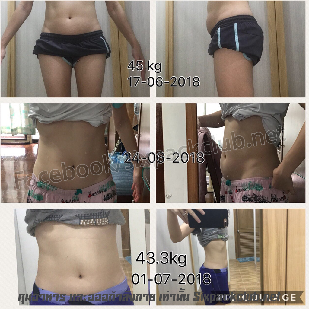 ผู้เทรนมีปัญหาในเรื่องของ เป็นเซลลูไลท์และมีไขมันสะสม รูปร่างไม่เฟริมกระชับ ผู้เทรนมีเป้าหมายอยากลดน้ำหนักกระชับสัดส่วน อยากมีหุ่นที่ดีขึ้น ให้เฟริมกระชับมากขึ้นกว่านี้ จึงปรึกษาและเข้าเทรนกับครูมายด์ หลังจากที่เข้าเทรนกับครูมายด์ได้เพียง 2 สัปดาห์ ผู้เทรนก็มน้ำหนักลดลงไป 1.7 กิโลกรัม ไขมันส่วนเกินลดลงไปอย่างชัดเจน กล้ามเนื้อกระชับได้สัดส่วนมากขึ้น หุ่นดีขึ้น ผิวเซลลูไลท์ก็ลดน้อยลงไปด้วย มีกล้ามเนื้อมากกว่าไขมัน ทำให้รูปร่างของผู้เทรนดูมีสุขภาพดีขึ้นมากๆเลยค่ะ