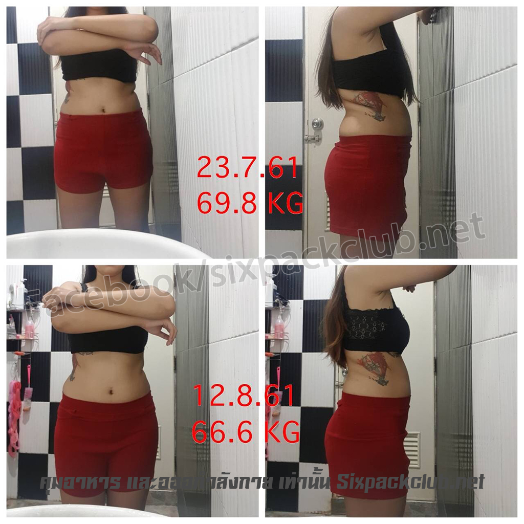 ผู้เทรนมีปัญหาในเรื่องของ กล้ามเนื้อไม่กระชับไม่ได้สัดส่วน  น้ำหนักตัวเกิน มีไขมันสะสมตามร่างกาย โดยเฉพาะต้นแขน ต้นขา และหน้าท้อง  เป็นผิวเซลลูไลท์  ผู้เทรนมีเป้าหมายอยากให้ตัวเองมีรูปร่างที่ดีขึ้น น้ำหนักลด ไขมันส่วนเกินลดน้อยลง จึงปรึกาาและเข้าเทรนกับครูมายด์ หลังจากที่เข้าเทรนกับครูมายด์ได้ 2 สัปดาห์เท่านั้น  น้ำหนักของผู้เทรนก็ลดลงไป จาก 69.8 กิโลกรัม เหลือ 66.6 กิโลกรัม  ลดลงไปถึง 3.2 กิโลกรัม ไขมันส่วนเกินที่ต้นแขน ต้นขา และหน้าท้องลดน้อยลงไป กล้ามเนื้อกระชับได้สัดส่วนมากขึ้น  สร้างความพอใจและสร้างความมั่นใจแก่ผู้เทรนเป้นอย่างมากค่ะ