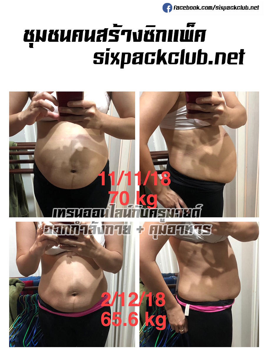 ผู้เทรนมีปัญหาในเรื่องของ เป็นคนอ้วนลงพุง ไขมันส่วนเกินสะสมมากและสะสมมาเป็นเวลานาน น้ำหนักตัวเยอะเกิน ผู้เทรนมีเป้าหมายที่จะลดไขมันส่วนเกิน ลดหน้าท้อง และลดน้ำหนัก อยากมีรูปร่างที่ดีขึ้น ผู้เทรนจึงตัดสินใจปรึกษาและเข้าเทรนกับครูมายด์ หลังจากที่เข้าเทรนกับครูมายด์ได้เพียง 3 สัปดาห์เท่านั้น น้ำหนักของผู้เทรนจาก 70 กิโลกรัม เหลือ 65.5 กิโลกรัม ลดลงไปถึง 4.5 กิโลกรัม ไขมันส่วนเกินก็ลดน้อยลงไปอีกด้วย สร้างความพอใจและความมั่นใจแก่ผู้เทรนเป็นอย่างมากคะ