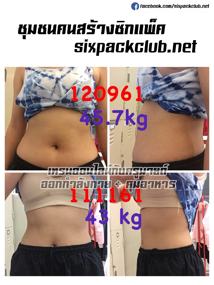 ผู้เทรนมีปัญหาในเรื่องของมีไขมันส่วนเกินสะสมทำให้รูปร่างไม่ได้สัดส่วน ไม่กระชับ มีน้ำหนักตัวเกิน ผู้เทรนมีเป้าหมายที่อยากลดไขมันส่วนเกิน ลดน้ำหนักและกระชับสัดส่วน โดยไม่พึงยาลดน้ำหนัก ผู้เทรนจึงตัดสินใจปรึกษาและเข้าเทรนกับครูมายด์ หลังจากที่เข้าเทรนกับครูมายด์ได้เพียง 8 สัปดาห์เท่านั้น น้ำหนักของผู้เทรนก็ลดลงไปจาก 45.7 กิโลกรัม เหลือ 43 กิโลกรัม รูปร่างดูเฟริมกระชับได้สะส่วนมากขึ้น โดยที่ไม่ต้องพึงยาลดน้ำหนักเลยเพียงควบคุมอาหารและออกกำลังกาย สร้างความพอใจและความมั่นใจแก่ผู้เทรนเป็นอย่างมากคะ